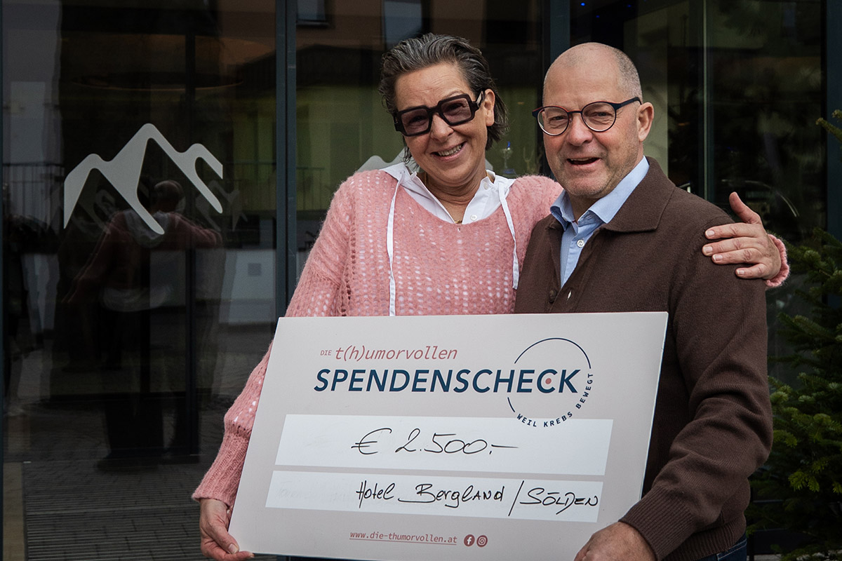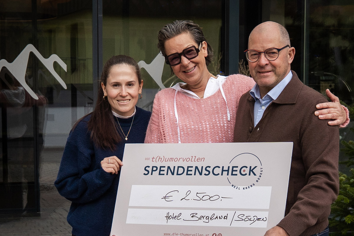 Im Rahmen der Weihnachtsfeier des Design- und Wellnesshotels Bergland in Sölden wurde eine Tombola organisiert, bei der die Mitarbeiterinnen und Mitarbeiter Lose erwerben konnten. Der gesamte Erlös dieser Tombola wurde unserem Verein DIE T(H)UMORVOLLEN gewidmet – eine Geste, die uns von Herzen berührt hat. Doch damit nicht genug: Die Gastgeberfamilie Siggi, Sarah und Anna Grüner hat diesen Betrag großzügig auf € 2.500,00 aufgestockt. Eine Unterstützung, die alles andere als selbstverständlich ist und die zeigt, wie viel Kraft in echtem Engagement steckt.